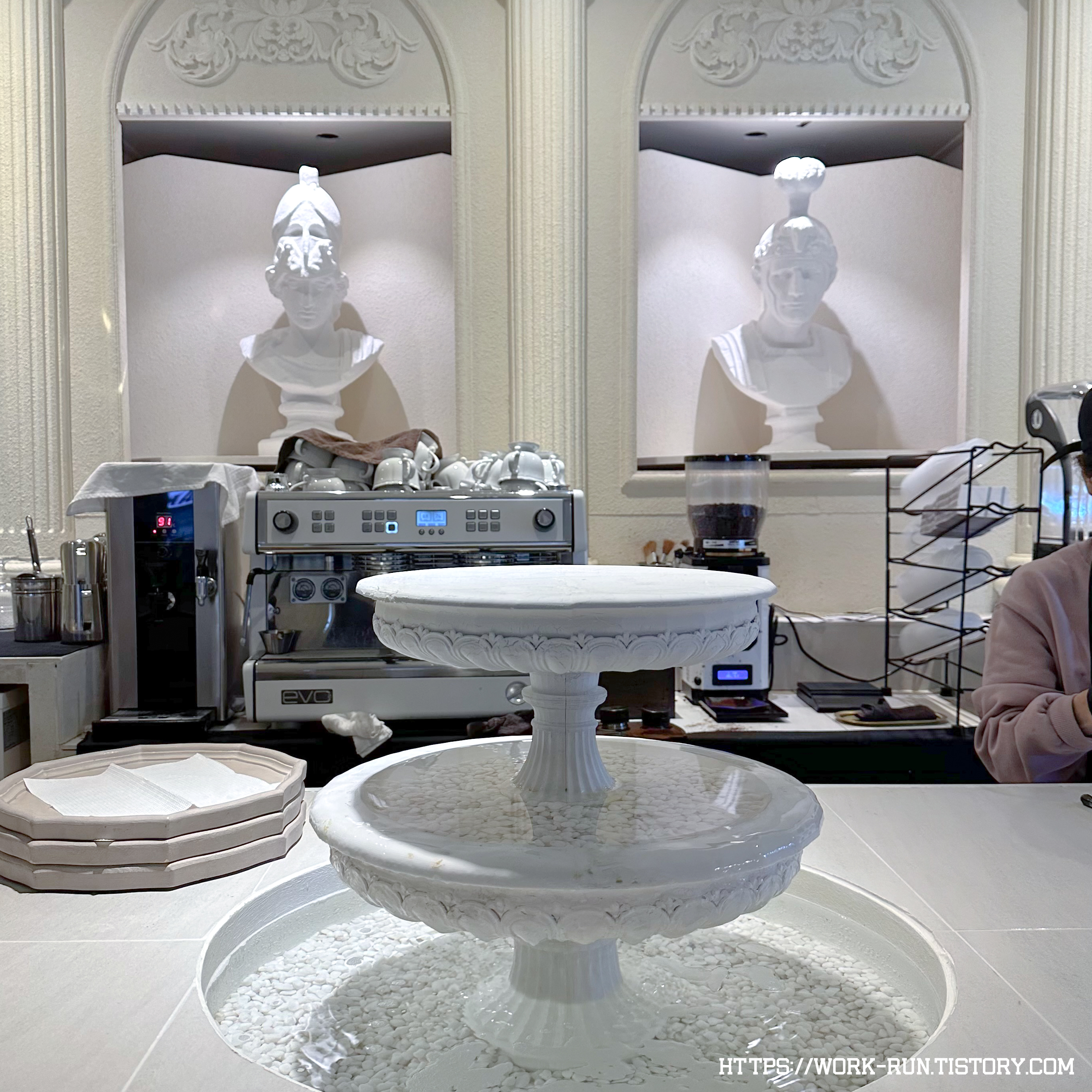 들어가자 마자 정면에 보이는 분수대 모양의 장식과